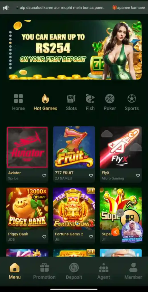 The users can enjoy Slots, Fish Poker, Poker, Live Casino Games, Lottery Games, Crash Game, Roulette, and Dragon Tiger Fight, all within one platform.