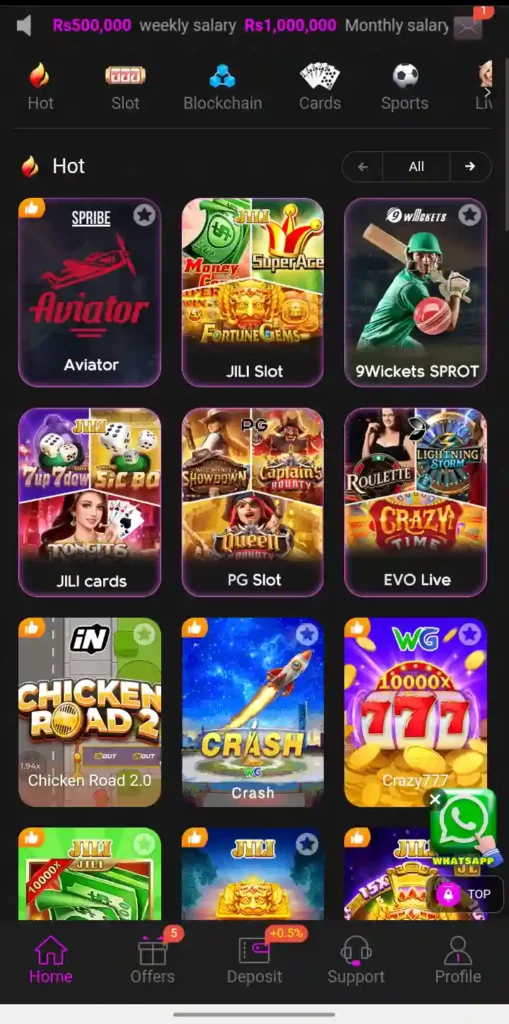 The platform primarily supports regional Pakistani payment services including Jazz Cash and Easypaisa for convenient deposits and withdrawals and some versions may also offer bank transfer options.